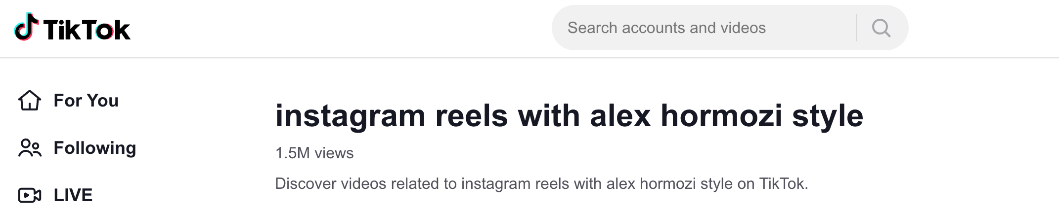 Alex Hormozi, the successful entrepreneur with a net worth exceeding $100 million, began producing videos in his closet using just a webcam. With a social media following of more than 2 million across platforms, Alex has become a household name in the world of business and content creation. From YouTube to TikTok to Instagram, millions of creators are searching for keywords like "Alex Hormozi style", "Alex Hormozi captions", "Alex Hormozi editing", etc.