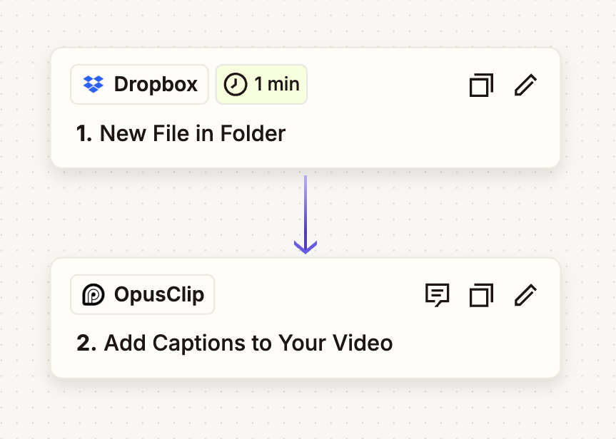 Automation #1: Add OpusClip captions to new videos uploaded to Dropbox (or Google Drive)