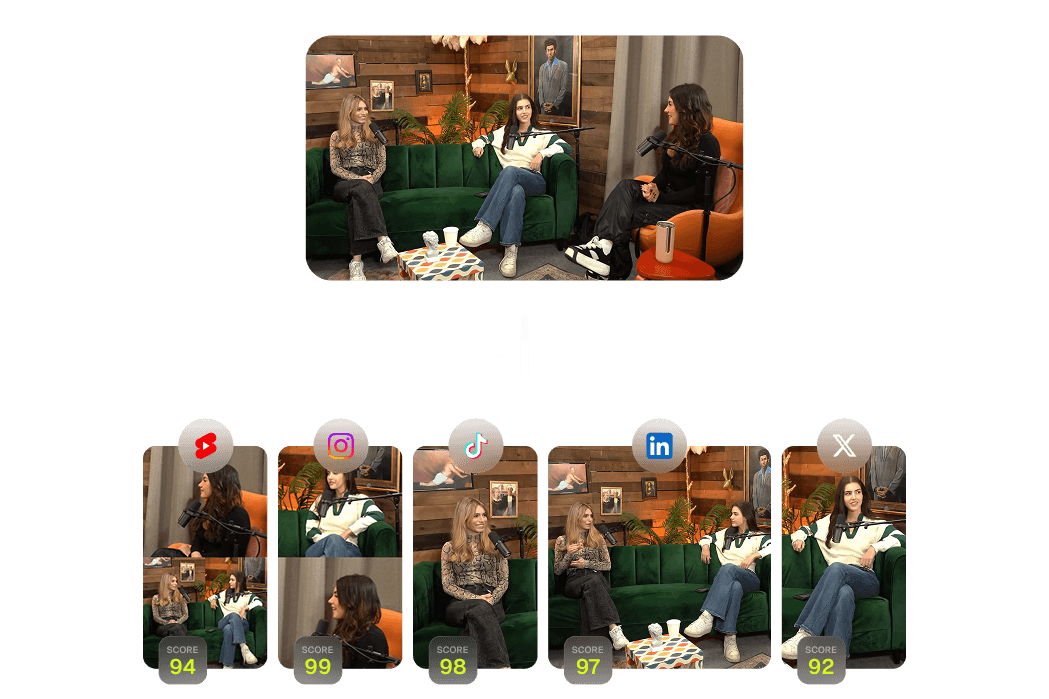 Our industry-leading AI curation model begins scanning your video for extractabl clips for social media. Our model is able to consistently identify 25+ social-ready clips per 1 hour of long video.
