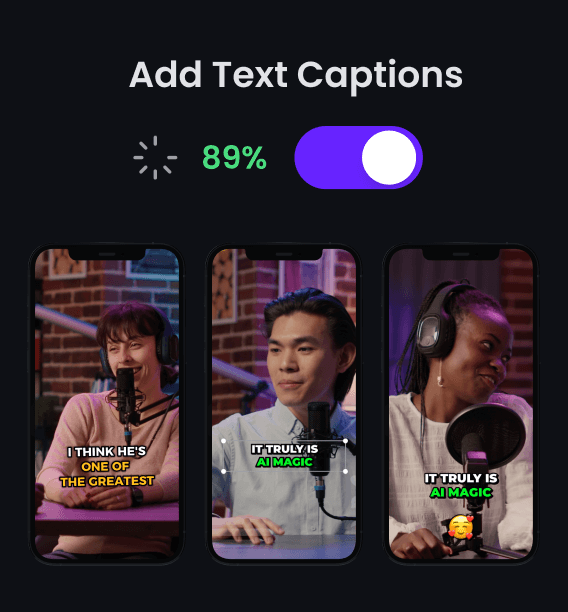 Incluye subtítulos automáticamente con nuestro creador de clips para transmisiones en vivo para mejorar la accesibilidad y la claridad de tus videos, lo que aumenta la participación de los espectadores.