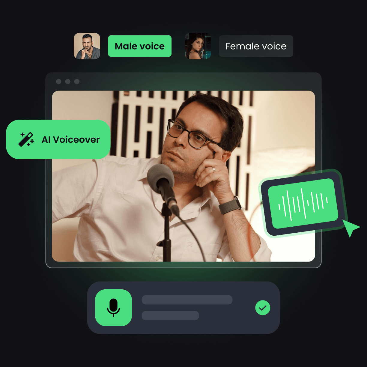 Contratar a un locutor puede tardar días. Editar el audio, aún más. Con OpusClip, puedes añadir una voz en off masculina en segundos. Luego, ajústala con controles de IA y expórtala al instante.