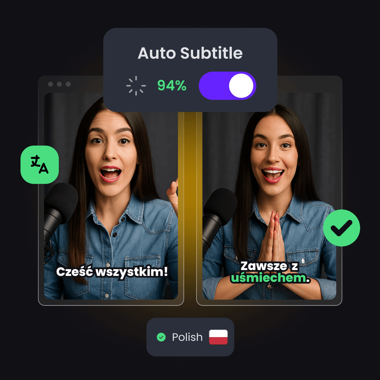 Esqueça os erros de digitação, a sincronização estranha e as palavras ausentes. Nossa IA analisa padrões de fala, entonação e contexto para adicionar legendas em polonês ao vídeo com um fluxo natural e coerente.