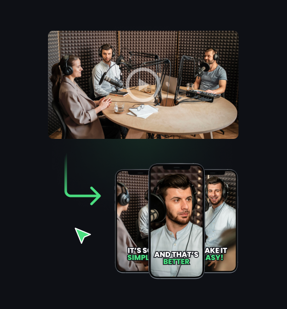 Transforme episódios já gravados em clipes curtos e compartilháveis que aumentam o engajamento. Nosso criador de clipes com IA foi projetado para capturar a atenção da sua audiência e mantê-la engajada por mais tempo — aumentando também sua base de ouvintes.
