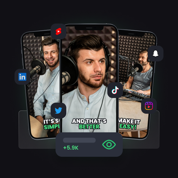 As ferramentas da OpusClip oferecem flexibilidade única para integrar seus clipes de podcast, sem esforço, em diferentes redes sociais. O conteúdo gerado pelo nosso criador de clipes se adapta perfeitamente a cada ambiente social.