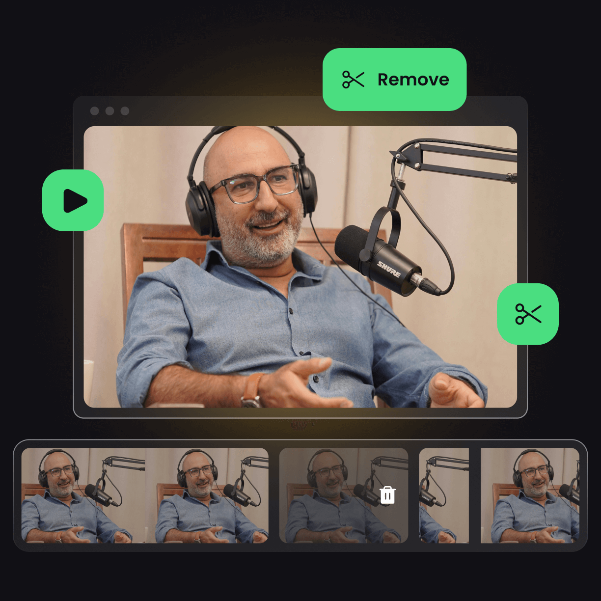 Nossa IA corta silêncios e remove palavras de enchimento como “ã”, “hum”, “ah”, “uh” para seu vídeo fluir naturalmente.