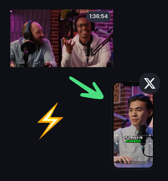 Amplie seu alcance, aumente o engajamento e faça sua audiência crescer no X (Twitter) com o Criador de Vídeos para X da OpusClip. No X, você tem cerca de 2 minutos para causar uma impressão duradoura — e nossa ferramenta com IA permite criar, sem esforço, conteúdos que atraem e mantêm a atenção dos usuários ocupados das redes sociais. Gere clipes no tamanho ideal que envolvem seu público, incentivam compartilhamentos e atraem novos seguidores. Expandir sua presença digital nunca foi tão fácil!