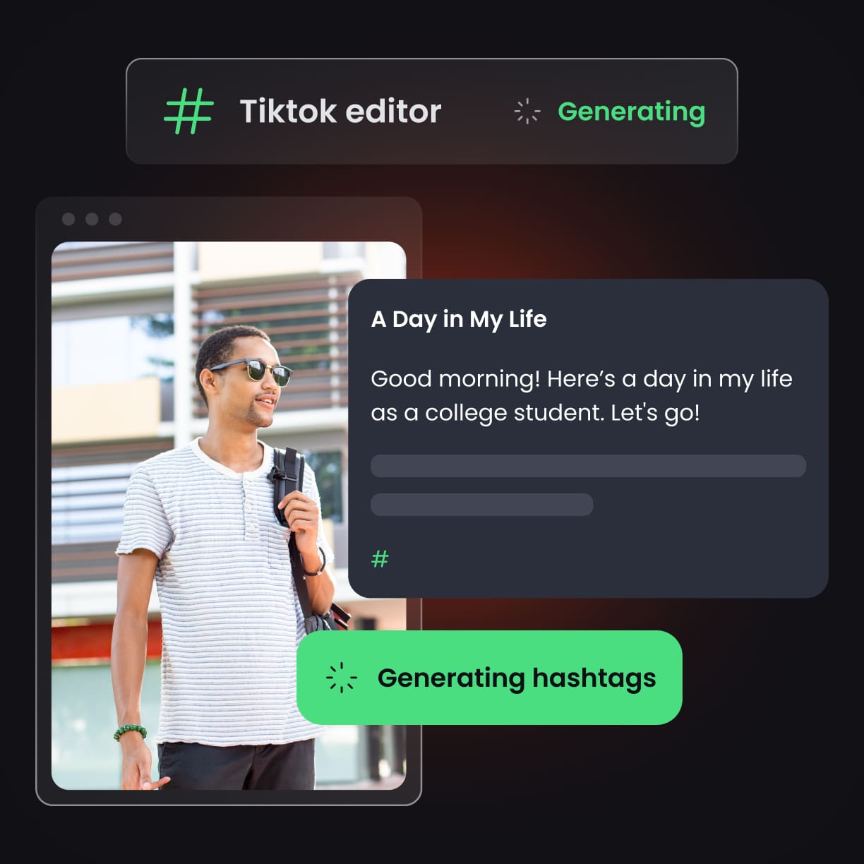 Apply viral TikTok templates, emojis, and on-brand overlays instantly. Save your brand kitâcolors, fonts, logosâand maintain a consistent look across every video you publish.