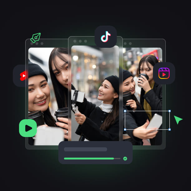 OpusClip's video joiner accepts MP4, MOV, AVI, and WebM files, plus direct URLs from YouTube, Vimeo, and cloud storage. You can export your joined video in 16:9 (YouTube, LinkedIn), 9:16 (TikTok, Reels, Shorts), 1:1 (Instagram feed), or 4:5 (Facebook, Pinterest). Our auto-reframe feature detects speakers and action, then crops intelligently for each aspect ratio—no manual adjustments required.
